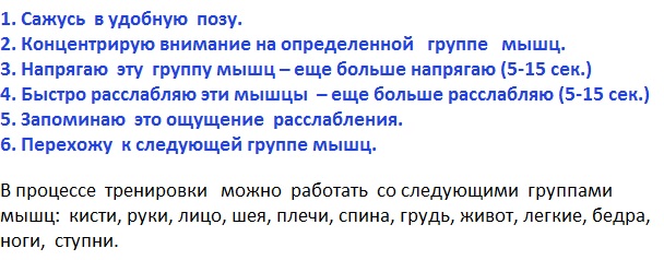 Еще теория и практика в статье «Нервно-мышечная релаксация по Джекобсону»