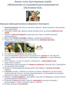 2 Комментарий на "Анонс стать Аутотренинг клуба «Избавление от излишней разговорчивости (болтливости)»."