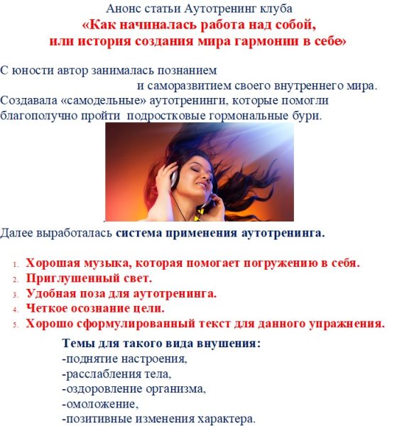 Создавала «самодельные» аутотренинги, которые помогли благополучно пройти подростковые гормональные бури.