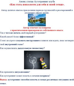 Вывод: аутотренинг способен помочь в самых различных ситуациях всей семье.