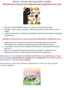 - Для того чтобы новая программа действий для нашего организма стала привычной, придется контролировать возникающие потребности.