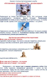 2 Комментарий на "Анонс статьи Аутотренинг клуба «Остановись, мгновенье! Ты… релаксация!»"