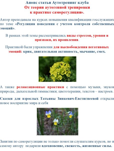 Занятия по саморегуляции не только помогли слушателям курсов, но и самому автору подарили вдохновение, свежесть, жизненные силы.