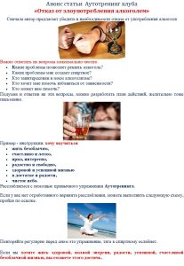 В борьбы с злоупотреблением алкоголем автор предлагает для начала убедить себя в необходимости отказа от употребления алкоголя.