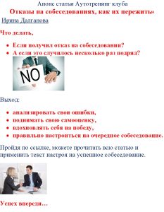 - правильно настроиться на очередное собеседование.