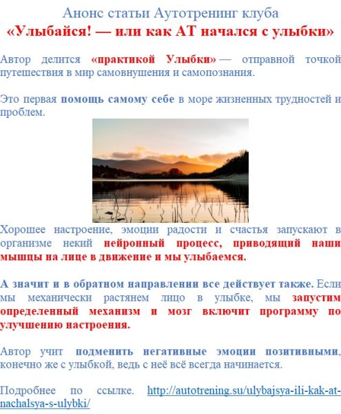 Подробнее по ссылке. https://autotrening.su/ulybajsya-ili-kak-at-nachalsya-s-ulybki/
