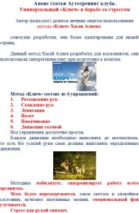 2 Комментарий на "Анонс статьи Аутотренинг клуба. Универсальный «Ключ» в борьбе со стрессом"