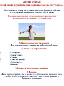 Даже такое естественное и привычное явление, как дыхание, тоже требует к себе системного, научного, творческого подхода и бережного отношения.