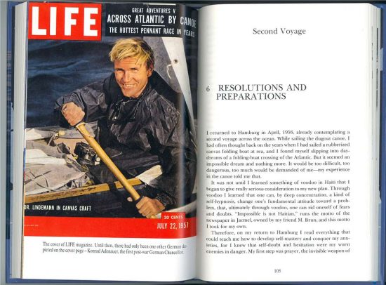 По его словам — АТ, как раз и был тем «тайным оружием», которым не были вооружены его менее удачливые предшественники, пытавшиеся преодолеть на лодке Атлантический океан. Автор книги, очень захватывающе рассказывает о своем одиночном путешествии на небольшой байдарке, которую он зовет «ореховой скорлупой».