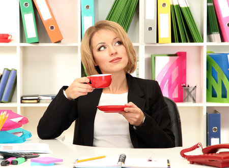 Прекрасная тема недели! А картинка просто прелесть! Офис, деловой костюм и ……. никакого черно-бело-серого фона вокруг! Разноцветные папки и подставки, красный телефон заранее настраивает ответить на звонок с улыбкой :)