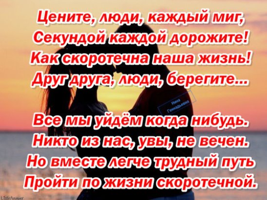 Наташа! … в одном месте прочитала приблизительно такой текст: если не простить своего обидчика, то на одного плохого человека станет больше». К своему стыду не запомнила автора этой мудрости, но зато поняла, прочувствовала — какой великий вред несут в себе обиды, жажда мести, злость…