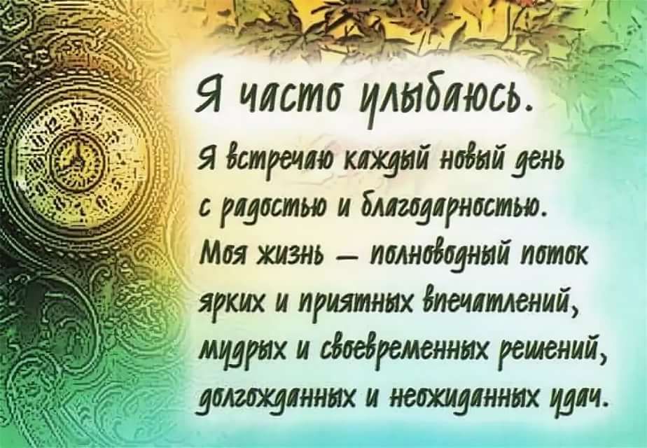 Первое, что мне понравилось, были аффирмации. Многократное повторение определённых фраз, которые дают установку на подсознательном уровне.