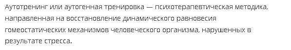 Несмотря на то, что интерес к психологии имеется давно, интерес к аутотренингу(АТ) у меня возник со временем. Но однажды на занятиях преподаватель упомянула о том, как люди остро реагируют на всякие мелкие неурядицы в общественном транспорте, а затем приезжают в очень неблагоприятном состоянии на работу. Тут мне пришлось узнать себя. С того момента и началось моё изучение этого случайного открытия. Определение из интернета, которое мне первым попалось тогда на глаза и очень заинтересовало: