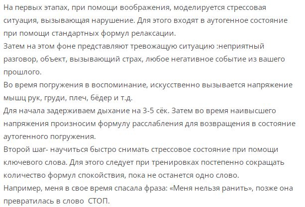 Аутотренингом Вы меня заинтриговали! Особенно, тот ньюанс , что при панических атаках помогает! В наше супер насыщенное время конфликтной информацией и ядерной энергией — это просто волшебная палочка, помогающая быть адекватной! Надо попробовать!